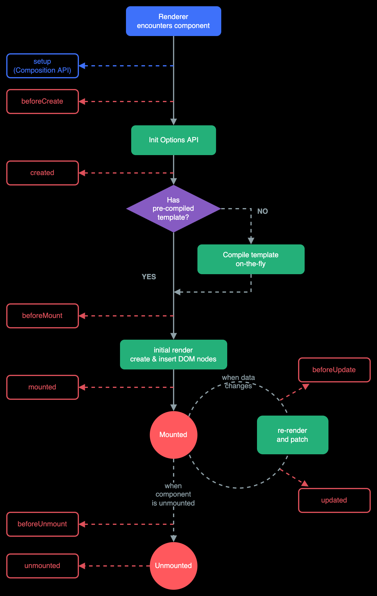 app.mount("#app");应用根组件的内容将会被渲染在容器元素里面。容器元素自己将不会被视为应用的一部分。.mount() 方法应该始终在整个应用配置和资源注册完成后被调用。同时请注意,不同于其他资源注册方法,它的返回值是根组件实例而非应用实例。